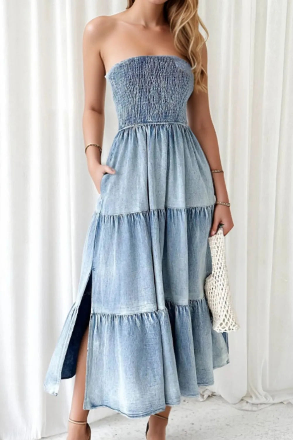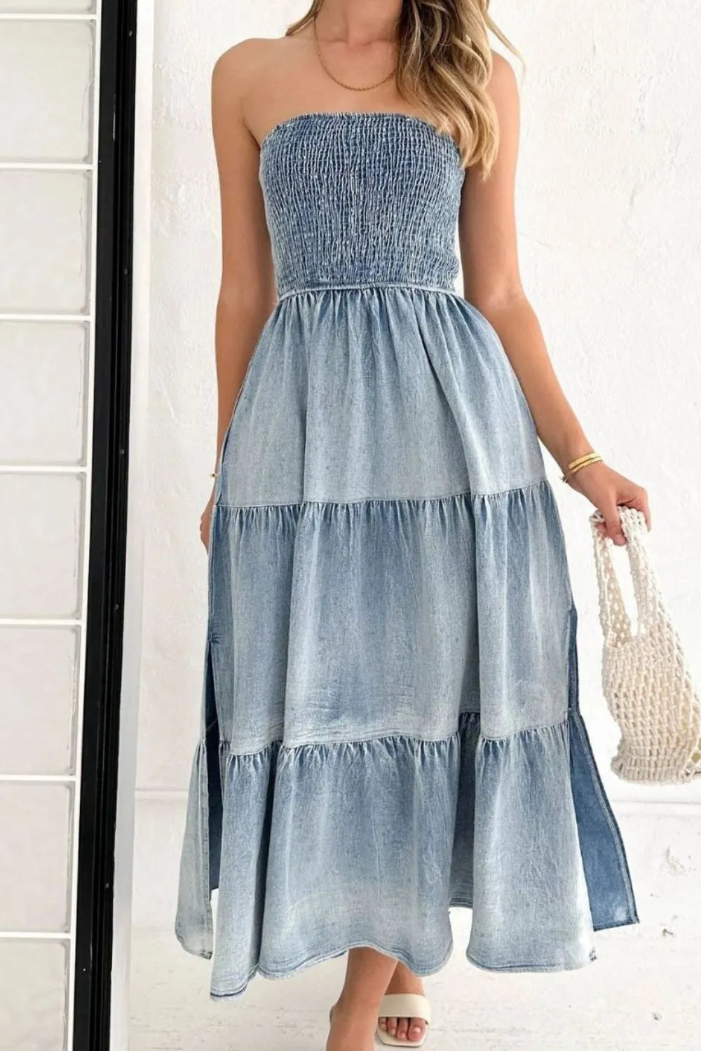 Turn heads at the barn or beyond in this totally rad smocked tube dress! The tiered silhouette brings serious playful energy, while strategic slits keep things flirty and fun. Crafted... View full product details