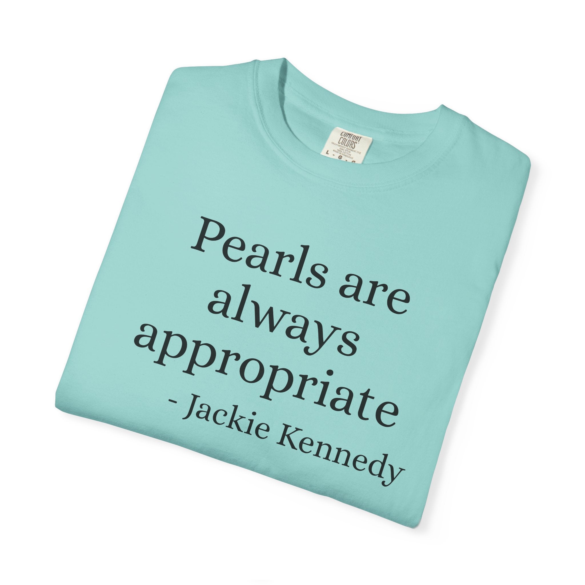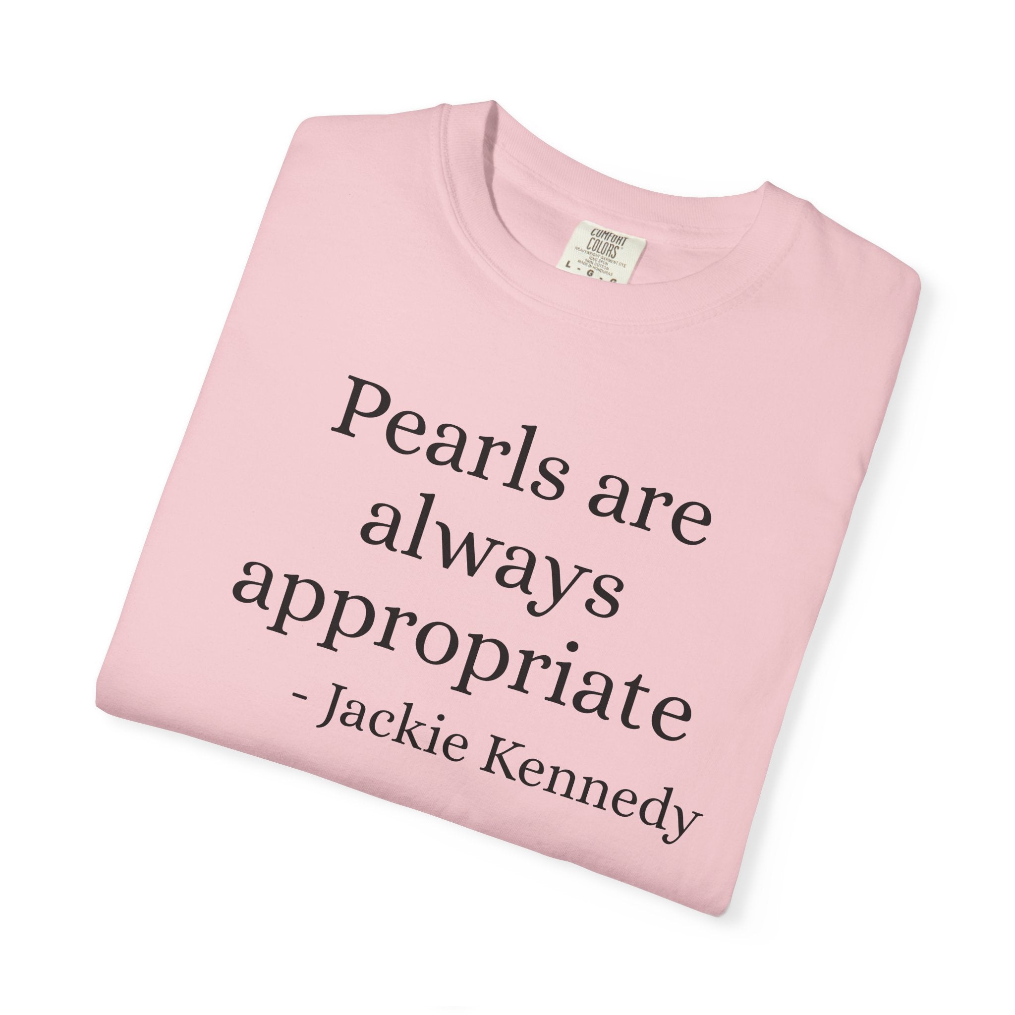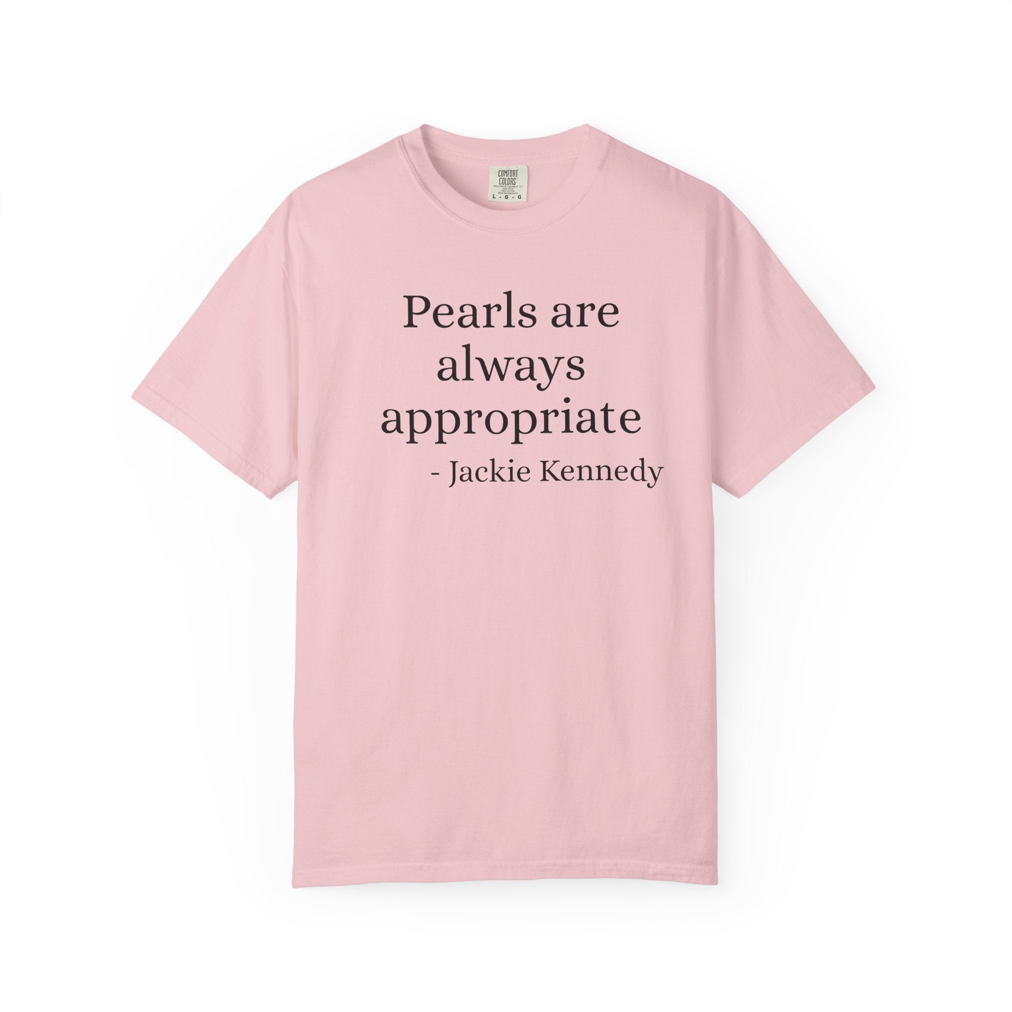 Embrace the timeless elegance of a true fashion icon. This "Pearls Are Always Appropriate" graphic tee pays homage to Jackie Kennedy's legendary style and her belief that classic sophistication never... View full product details