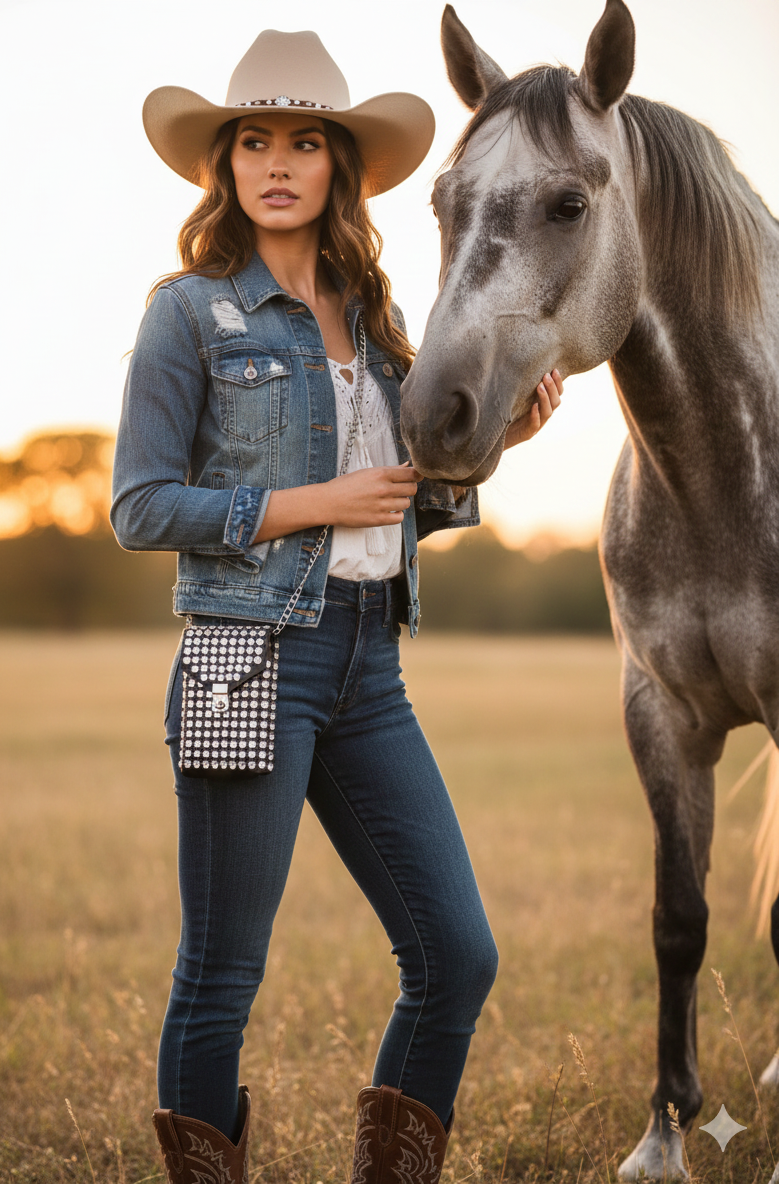 Unleash your inner queen with this show-stopping, blinged-out Sedona Crossbody Cell Phone Case! Designed for the cowgirl who loves glamour, this case features a stunning array of shimmering rhinestone and metal... View full product details