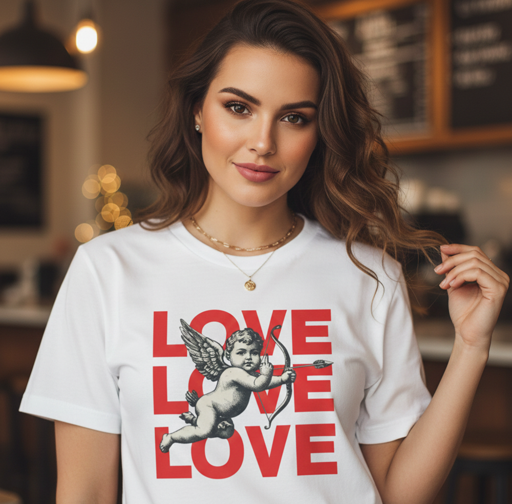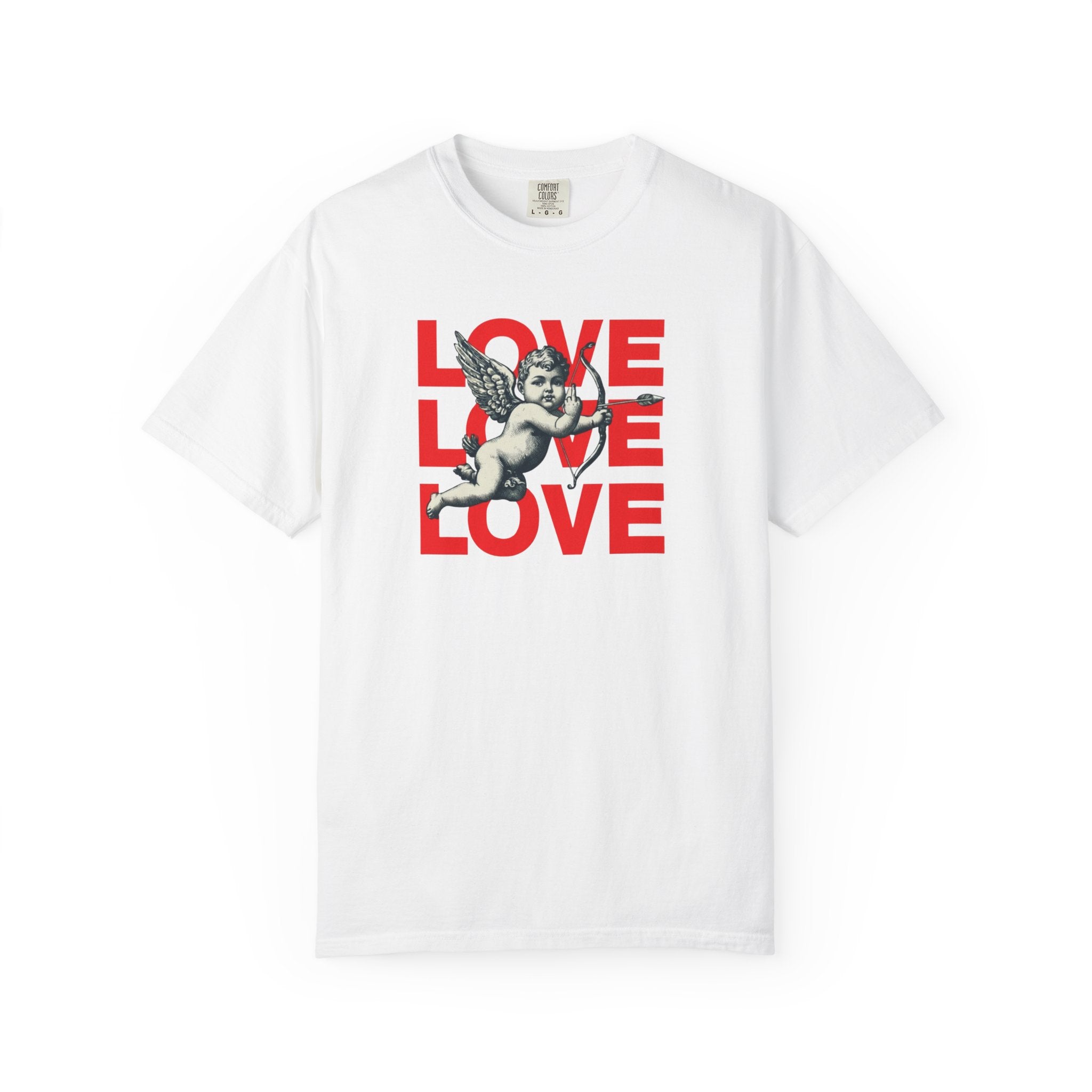 Forget the candy hearts and roses! Give 'em the bird instead. Our Unhinged Cupid "Love" Graphic Tee is the ultimate middle finger to traditional romance. Featuring a vintage-style cherub with a modern, rebellious attitude, this shirt is designed for those who prefer their Valentine’s Day with a side of sarcasm and a whole lot of edge.